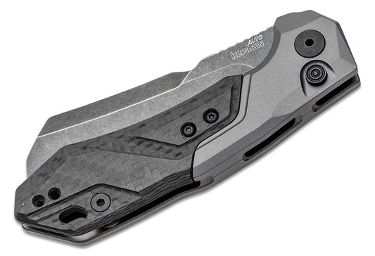 Kershaw 7850 Launch 14 AUTO Folding Knife 3.375" BlackWashed CPM-154 Cleaver Blade, Gray Anodized Aluminum Handles with Carbon Fiber Scale