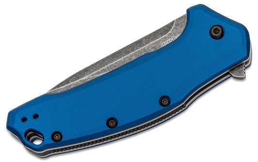 Kershaw 1776NBBW Link Assisted Knife 3.25" Blackwash Plain Blade, Navy Blue