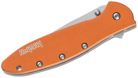 Kershaw 1660OR Ken Onion Leek Assisted Flipper Knife 3" Bead Blast Plain Blade, Orange Aluminum Handles