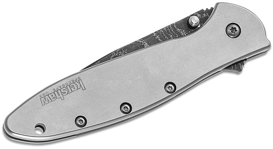 Kershaw 1660DAM Ken Onion Leek Assisted Flipper Knife 3" Damascus Plain Blade, Stainless