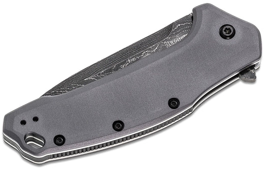 Kershaw 1776GRYDAM Link Assisted Flipper Knife 3.25" Damascus Plain Blade, Gray