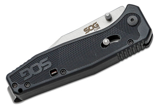 SOG Flare Assisted Folding Knife 3.5" Satin Plain Blade, Black GRN Handles - FLA1001-CP