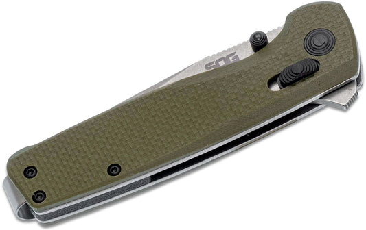SOG Terminus XR Flipper Knife 2.95" Stonewashed Point Blade, OD Green G10 Handles - XR Lock - TM1022-BX