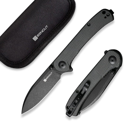 SENCUT Scepter Flipper Knife Dark Green Canvas Micarta Handle (2.97" Black Stonewashed 9Cr18MoV Blade) SA03G