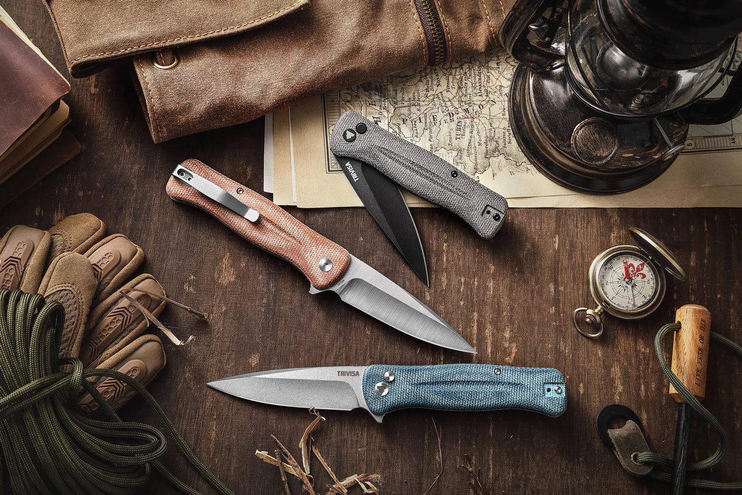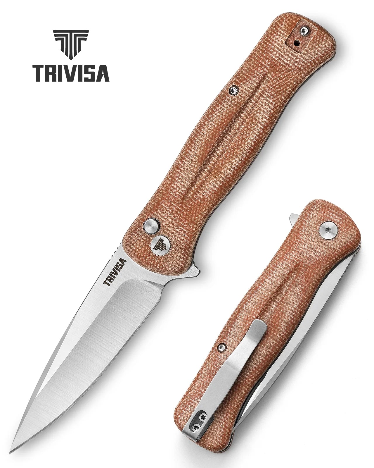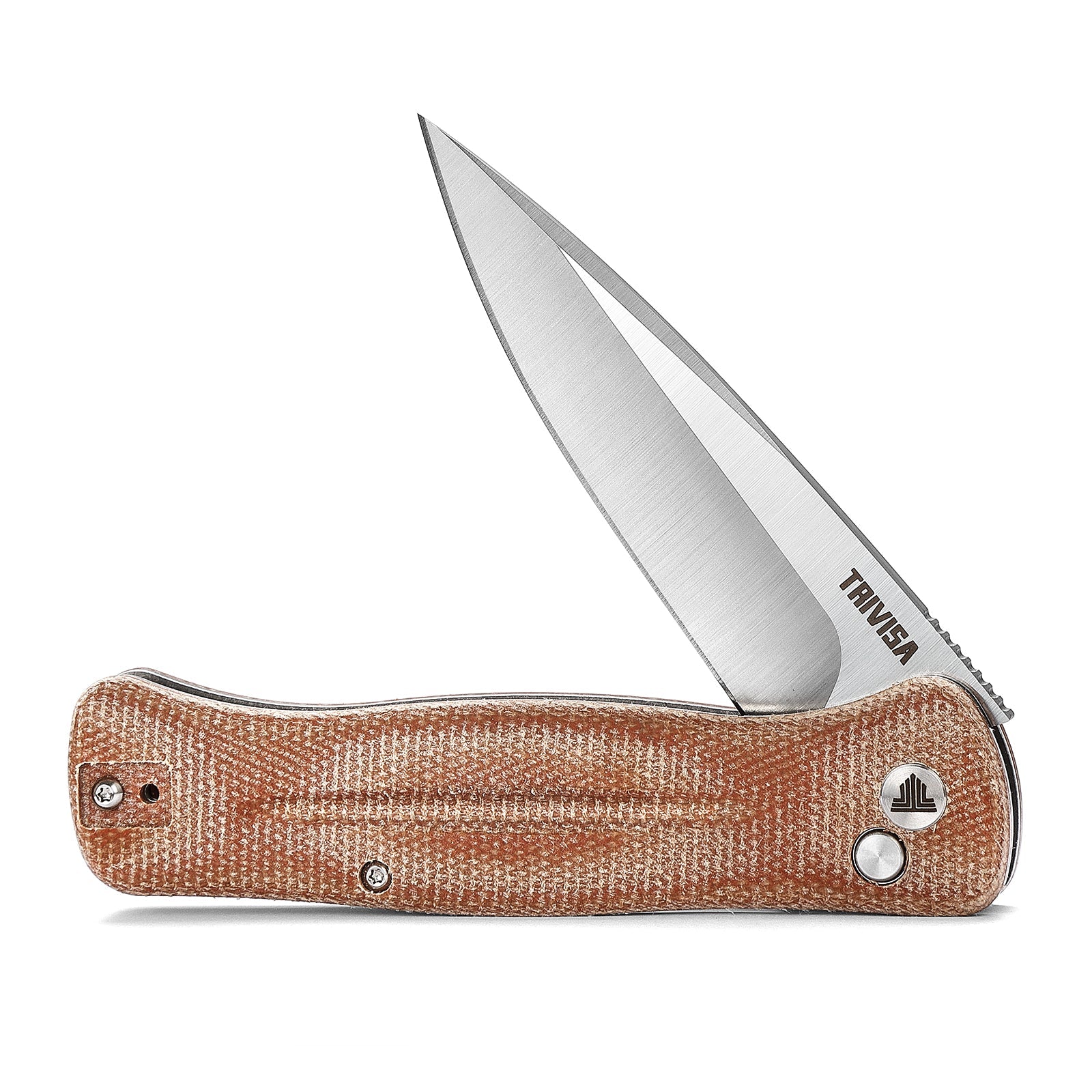 TRIVISA Dor-04Br Button Lock,3.66" 14C28N Steel,Micarta Handle