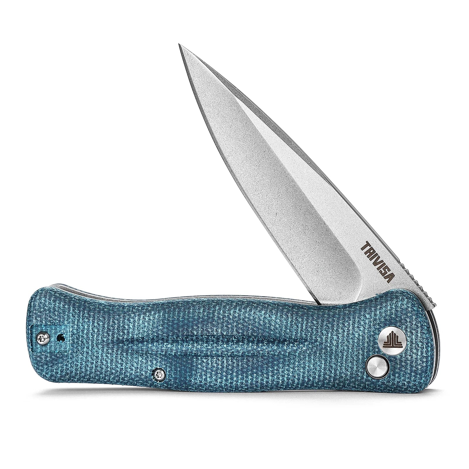 TRIVISA Dor-04Bu Button Lock,3.66" 14C28N Steel,Micarta Handle